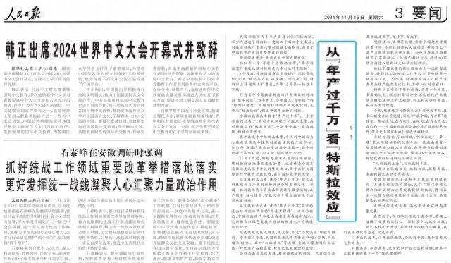 近日,《人民日?qǐng)?bào)》在第三版顯著位置刊發(fā)了一篇聚焦特斯拉的評(píng)論員文章,標(biāo)題直指“特斯拉效應(yīng)”,這不僅是對(duì)特斯拉在中國(guó)市場(chǎng)發(fā)展的高度認(rèn)可,更是對(duì)其在全球新能源汽車領(lǐng)域引領(lǐng)地位的肯定。
