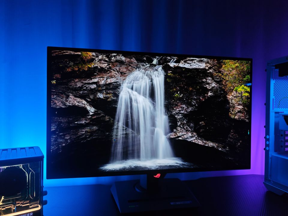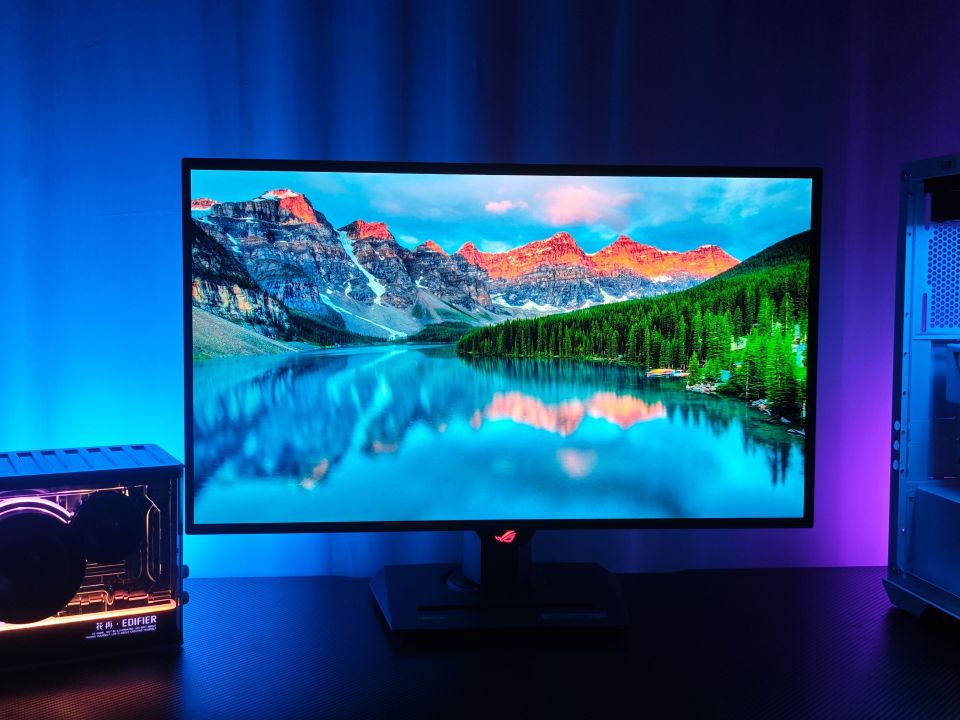 ROG絕殺系列主要面向廣大電競玩家,主打高刷以及極致的競技優化,ROG絕殺27MAX使用業界領先的新型WOLED面板,26.5寸的屏幕尺寸搭配2K高清分辨率,實際顯示效果非常出眾,遠處陽光照耀的山嵐,近處的水中倒影栩栩如生,讓人不禁感嘆江山如此多嬌!