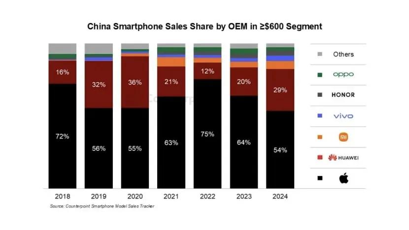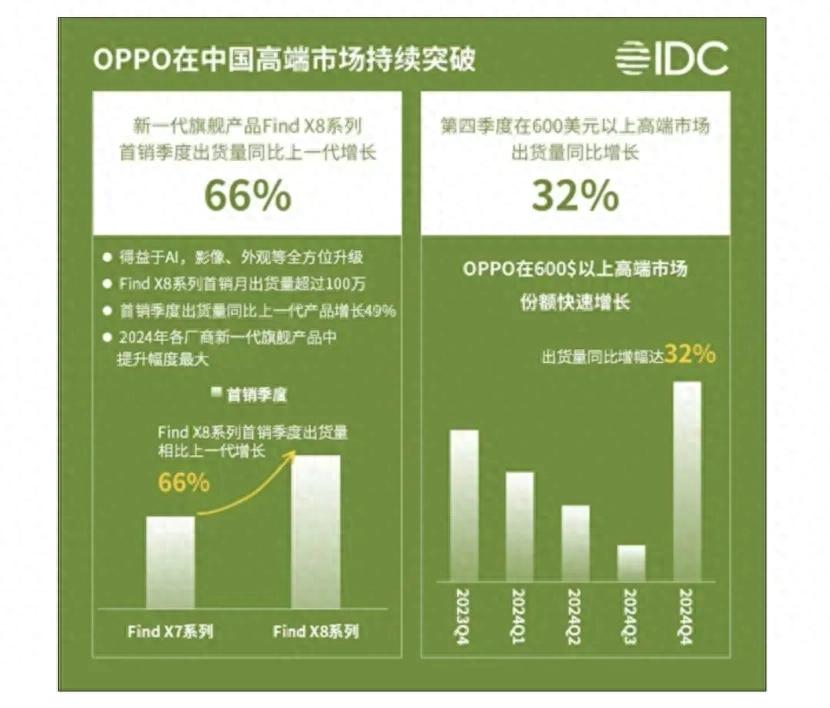 2024年Find X8系列憑長焦技術帶動4000元以上機型出貨量增32%,但2024年高端市場份額前三為蘋果、華為、小米,OPPO折疊屏市占率僅7.1%,售后爭議暴露品牌信任短板。