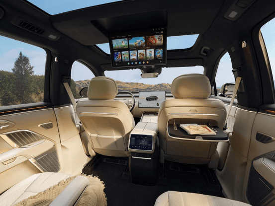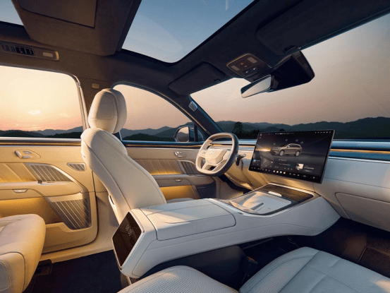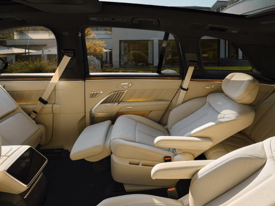 二排座椅的電動調節還有通風加熱按摩也都配備,還有零重力座椅,可與前排座椅聯動,而且前排座椅還能拆掉頭枕與二排連通成床,頭頂還有一塊巨大的玻璃天幕,開揚感不錯,預計會有電動遮陽簾,可以說9系SUV該有的舒適性配置它真的一樣不落。