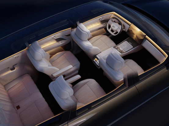 首先,L90整體的內飾樣式還是與一脈相承,不過在內飾配色、門板造型、座椅絎縫還有細節用料方面明顯要更加高級,而且它的氛圍燈同樣也是“見光不見燈”的設計,配合暖色色調,很有家的溫馨感。