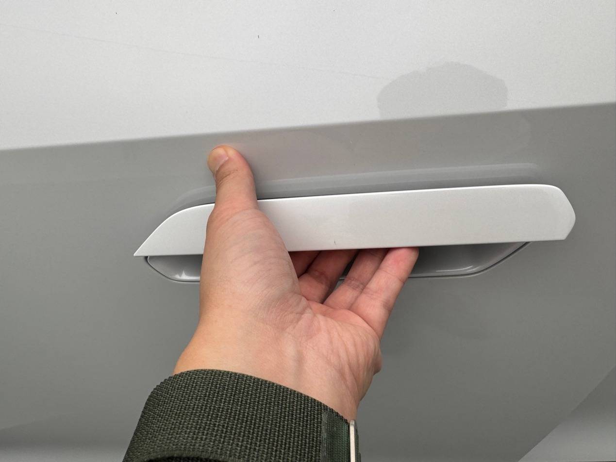 車身細節同樣極具匠心,尤其是門把手采用了半隱藏式設計,這不僅提升了整車側面的流暢感和科技感,更帶來了實用的便捷性。它避免了傳統凸出把手帶來的累贅感,讓整車看起來更簡潔利落,同時開關操作依然順手,兼顧美觀與實用。