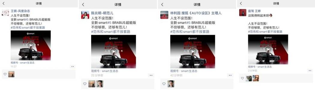 4月23日2025上海車(chē)展媒體日當(dāng)天,smart發(fā)布會(huì)上釋放《smart×范偉 人生沒(méi)有范圍》合作預(yù)告,為發(fā)布會(huì)造勢(shì)助推,引發(fā)參會(huì)媒體廣泛轉(zhuǎn)發(fā)和關(guān)注。